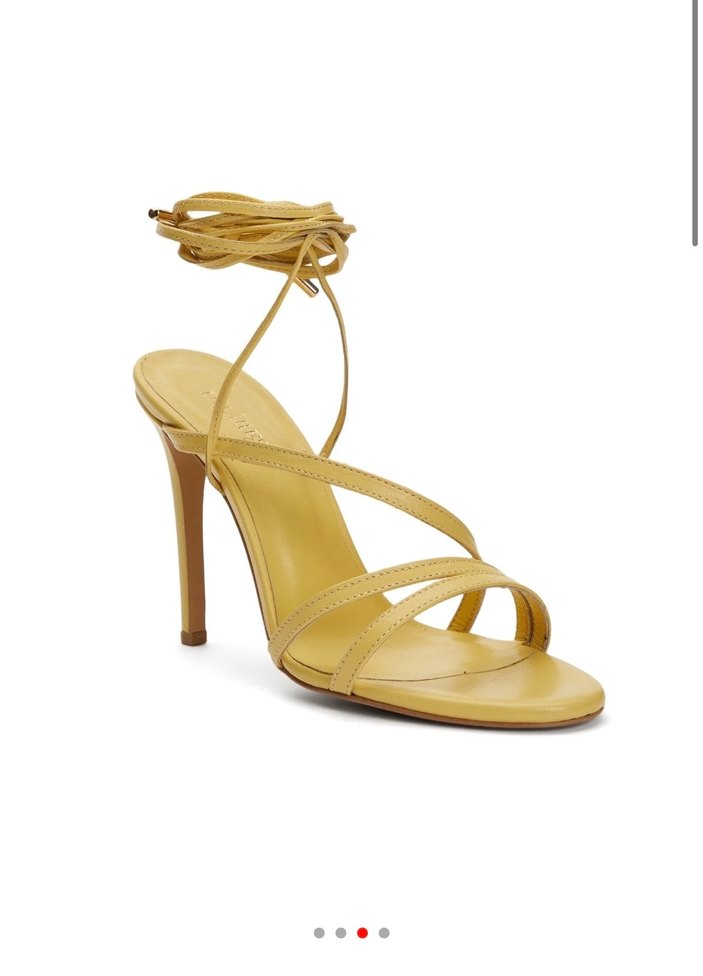 Sarı Deri İnce Topuklu Bağcıklı Kadın Ayakkabı