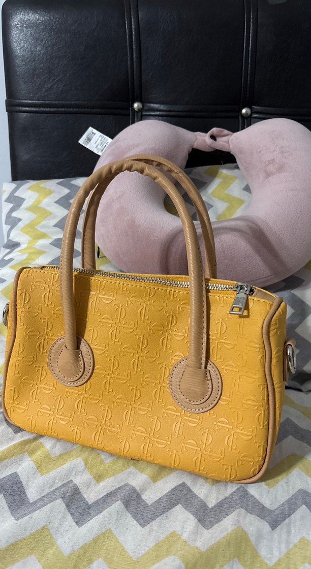 Pastel sarı deri çanta, modern klasik tasarıma sahip, tokalı saplarıyla dikkat çeker. Desensiz yüzeyi ve Paris tarzıyla trend gündelik görünüme uyum sağlar orjineldir.