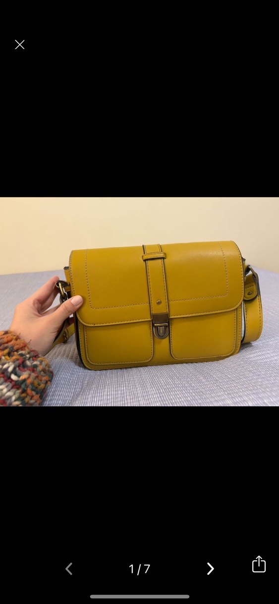 Sarı deri çanta, tokalı kapaklı ve modern klasik tasarıma sahiptir. Günlük kullanıma uygun, Paris etkili bohem tarzını yansıtır.