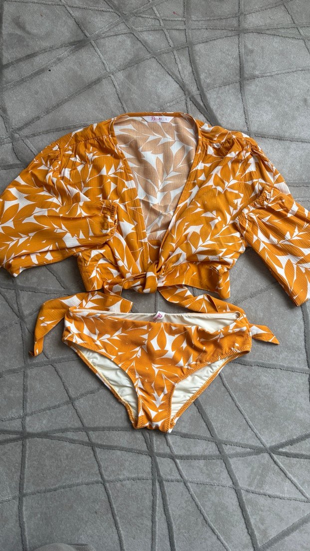 Sarı Desenli Bohem bikini altı ve üst