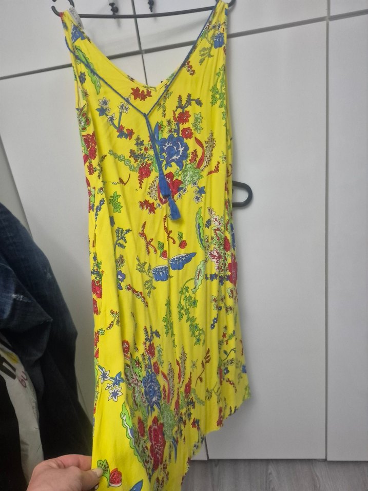 Sarı Desenli Bohem Tarz Yumuşacık elbise