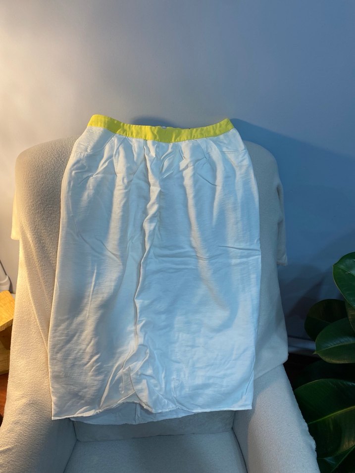 Sarı beyaz renk midi etek