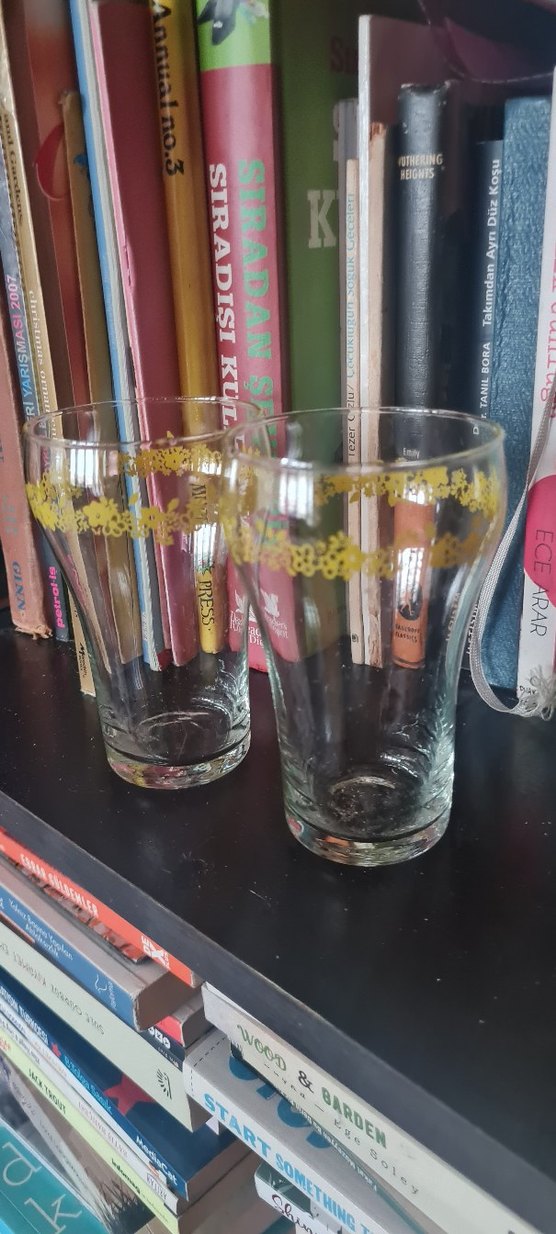 Vintage sarı çiçekli inanılmaz incelikte cam meşrubat bardakları