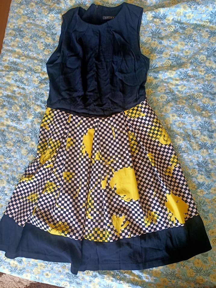 Sarı desenli, midi boy ve fitted kesime sahip hamile eteği. Sentetik kumaştan, fırfır detaylı ve parti için uygun, Paris sokak modası tarzında.