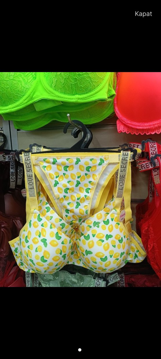 Sarı renkli, renkli limon desenli, kısa mini boy spor sütyen.