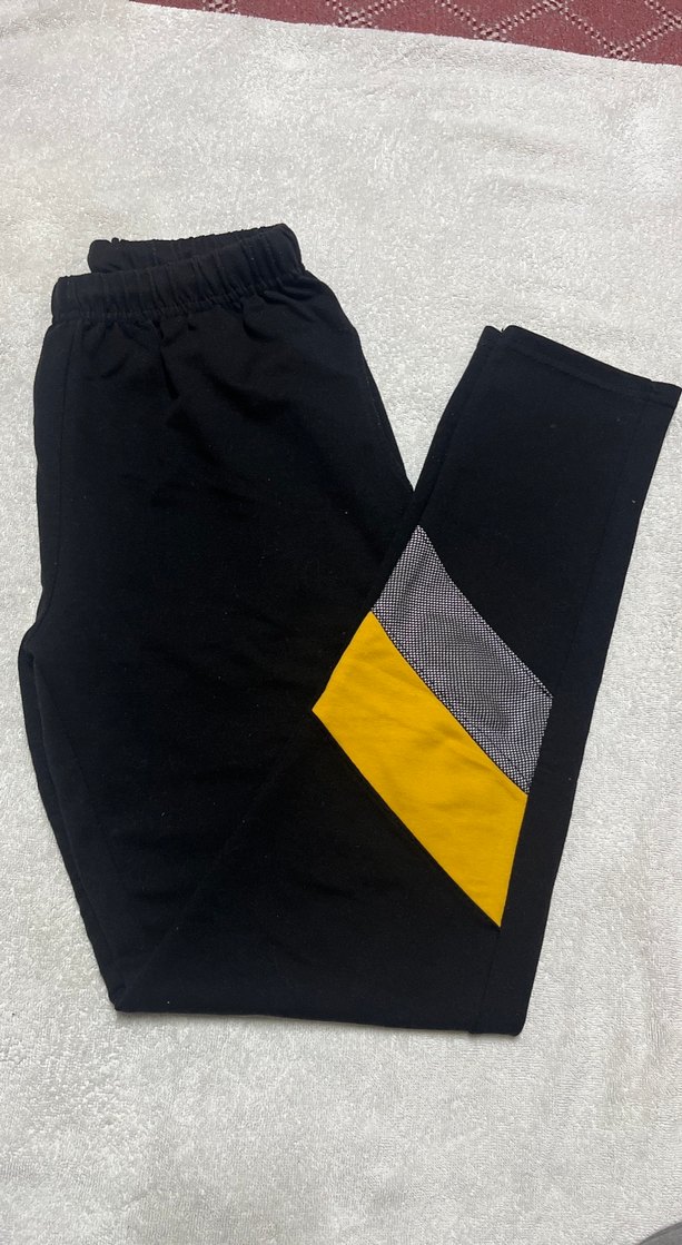 Spor ve günlük kullanıma uygun, elastik bel bantlı, sentetik kumaştan yapılmış, koyu sarı detaylı bayan eşofman altı