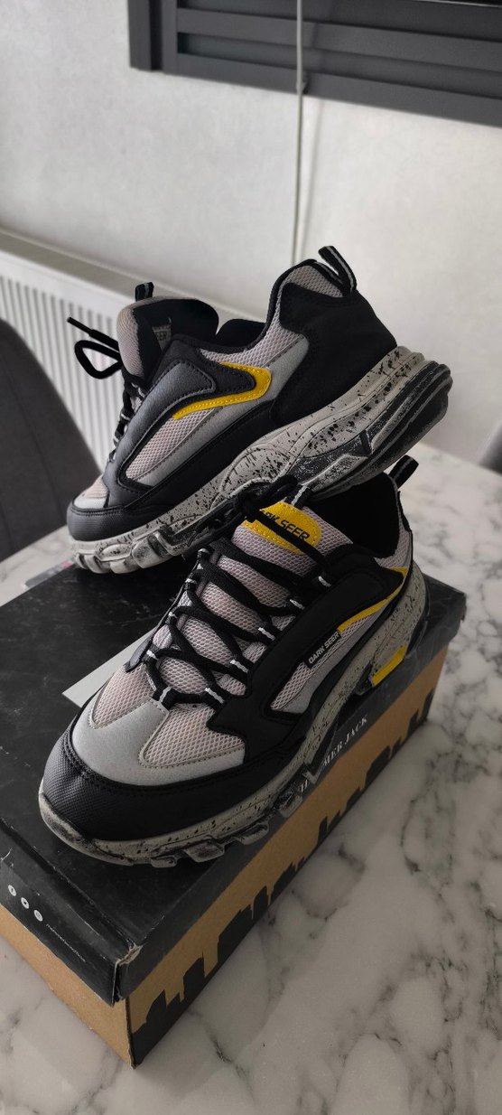 DARK SEER ORJİNAL Gri ve sarı baskılı, bağcıklı erkek spor ayakkabısı COK AZ KULLANILDİ