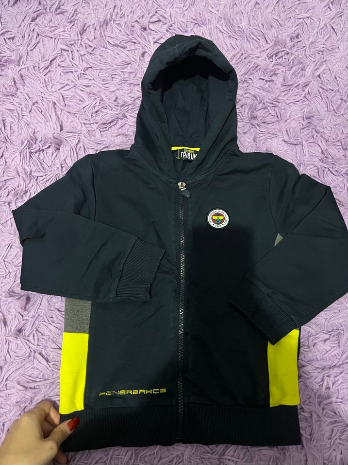 Kapüşonlu, fermuarlı ve uzun kollu erkek sweatshirt. Dar kesim, baskılı ve koyu sarı detaylara sahip, günlük sokak stili için uygun.