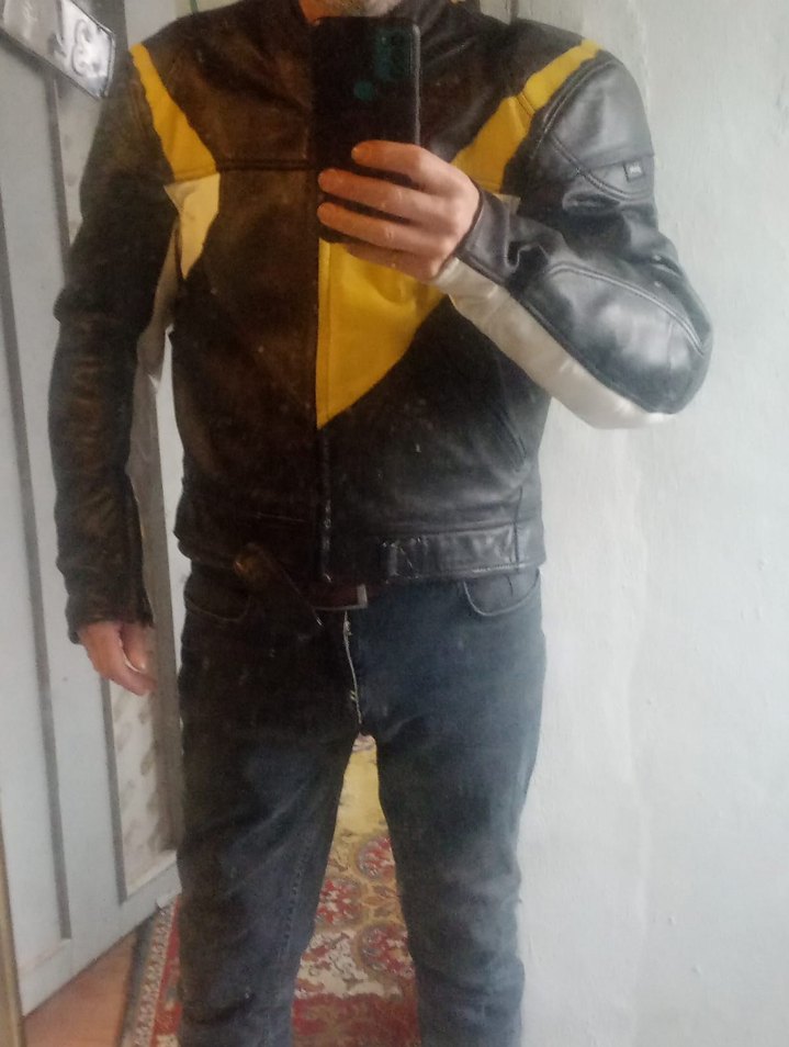 Deri malzemeden, sarı detaylı ve tokalı, notched lapel yakalı, uzun kollu, dar kesim biker ceket. Sokak stiline uygun günlük kullanıma uygun.