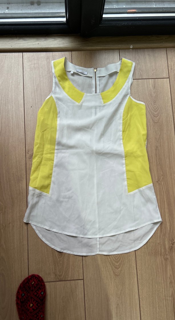 Sarı Detaylı V Yakalı Kolsuz Bluz
