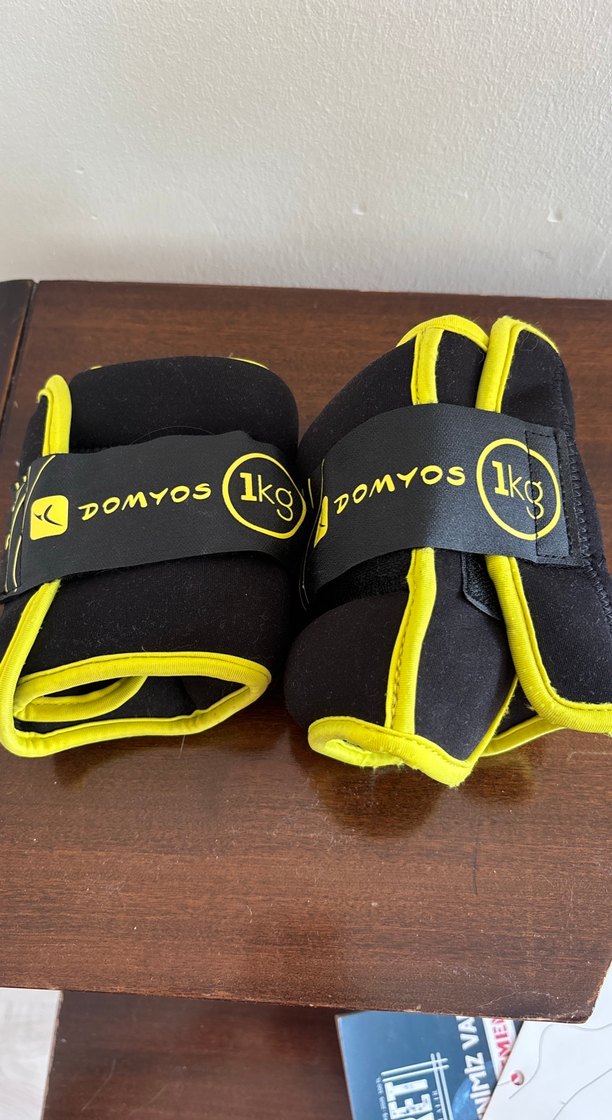 Sarı renkli, Velcro bantlı ve kauçuk malzemeden üretilmiş Domyos marka diz pedleri, athleisure ve street wear tarzına uygundur.