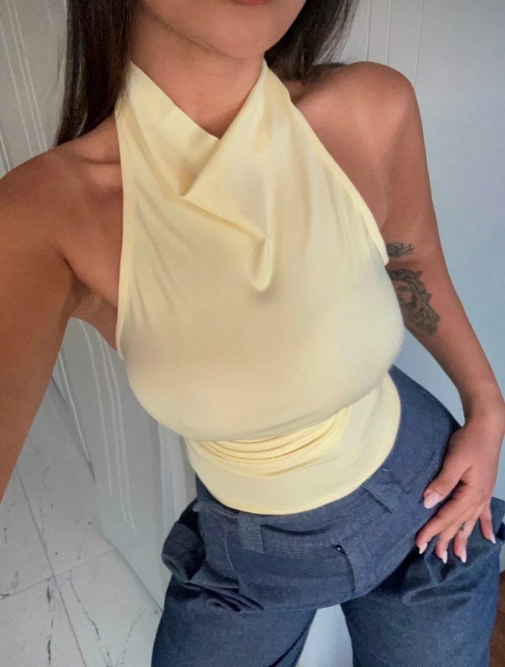 Sarı Drapeli Halter Yaka Mini Kadın Bluz