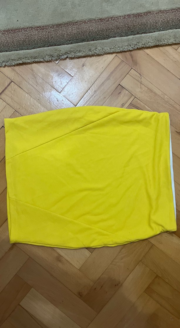 Sarı renkte, drapeli ve midi boyda, hamilelere uygun fitted etek. Yumuşak sentetik kumaştan üretilmiş, spor ve athleisure tarzına uygun.