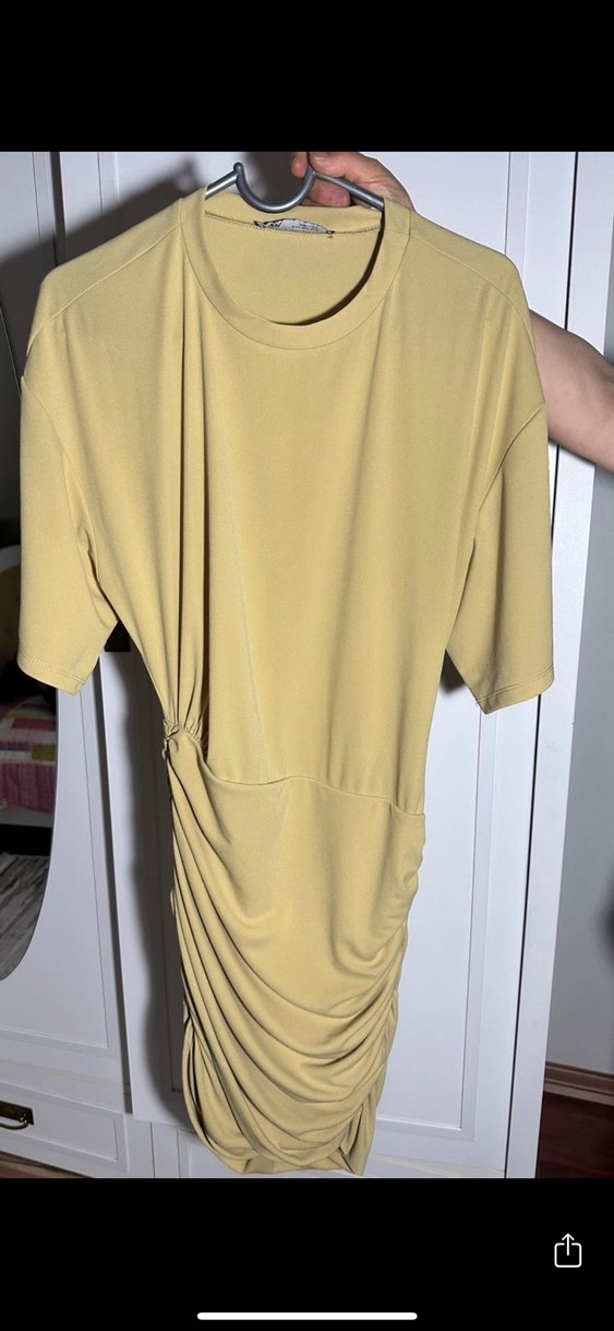 Sarı Drapeli Midi Kadın Elbise