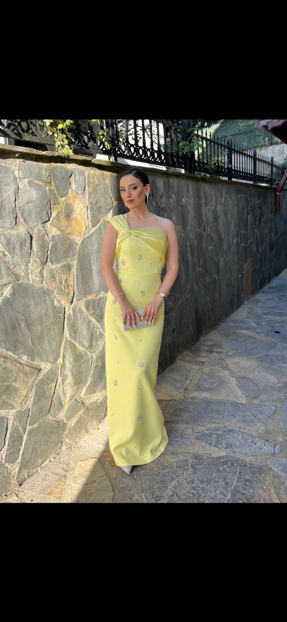 Sarı renkli, straplez yakalı, drapeli ve taşlı uzun abiye elbise. 36 bedendir. Ürün 1 kere düğünde giyilmiştir hiçbir deformasyonu yoktur. 34-36 bedene çok rahat olur. Ürünün sıfır satış fiyatı 9000tl dir. boyum 164 - 54kg. 5cm topuklu ile giyilmiştir. Fiyat teklifini açıktır.