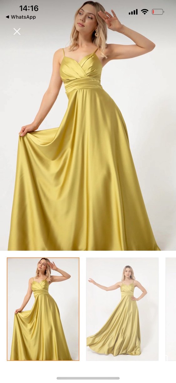 Bu dar kesim, straplez abiye elbise drapeli tasarımı ve parlak sarı kumaşıyla düğünler için uygundur. Kolsuz ve uzun boylu, modern klasik tarzda.
