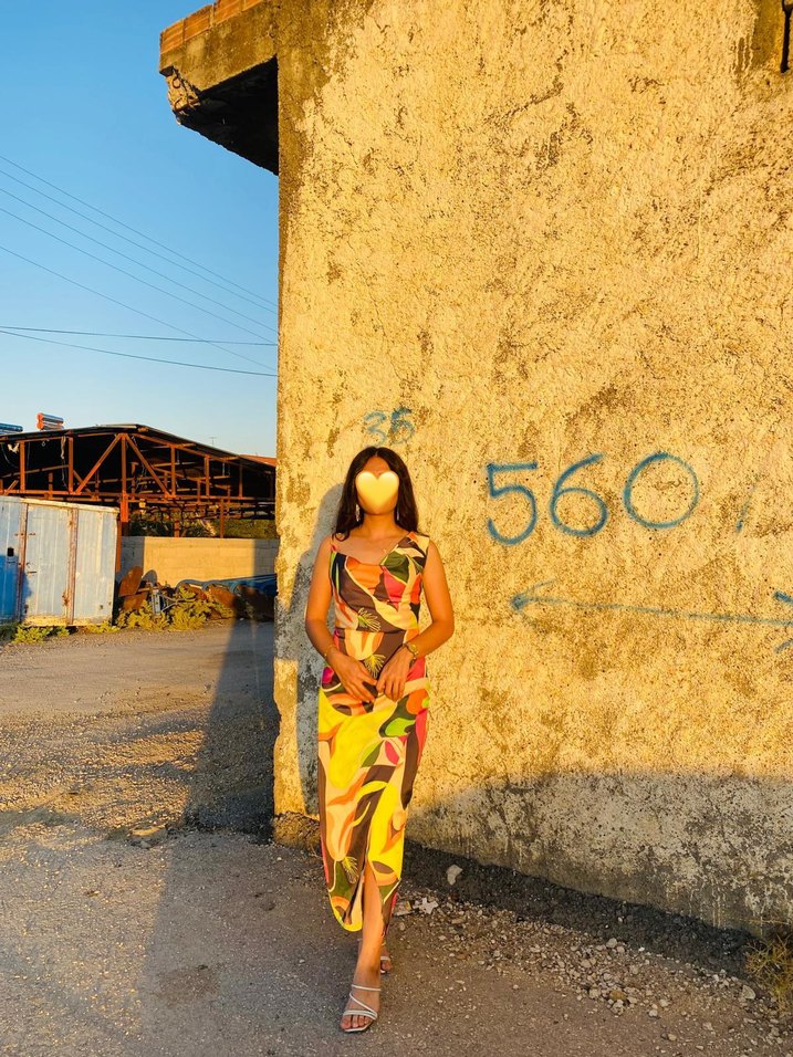 Sarı Drapeli Uzun Bağcıklı Elbise