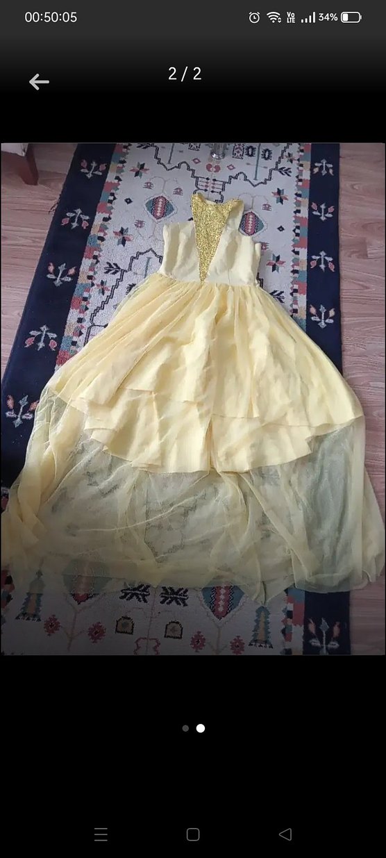 Sarı Drapeli Uzun Bohem Kadın Abiye