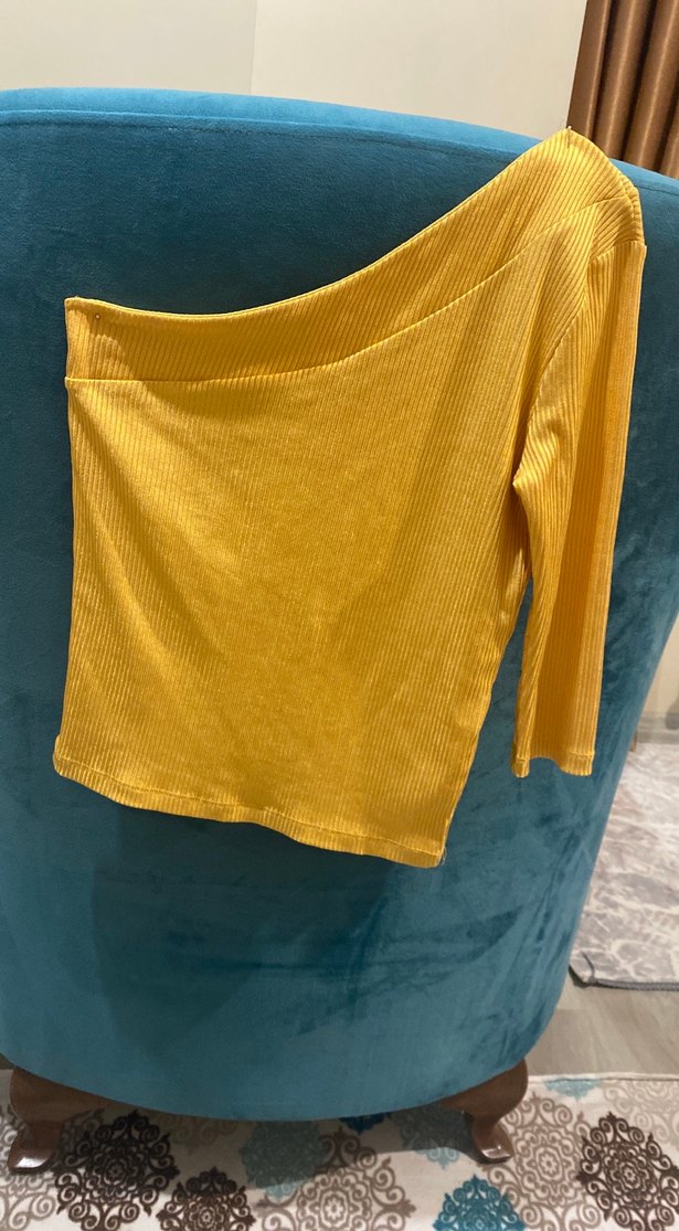 Sarı Drapeli Uzun Kollu Kadın Bluz
