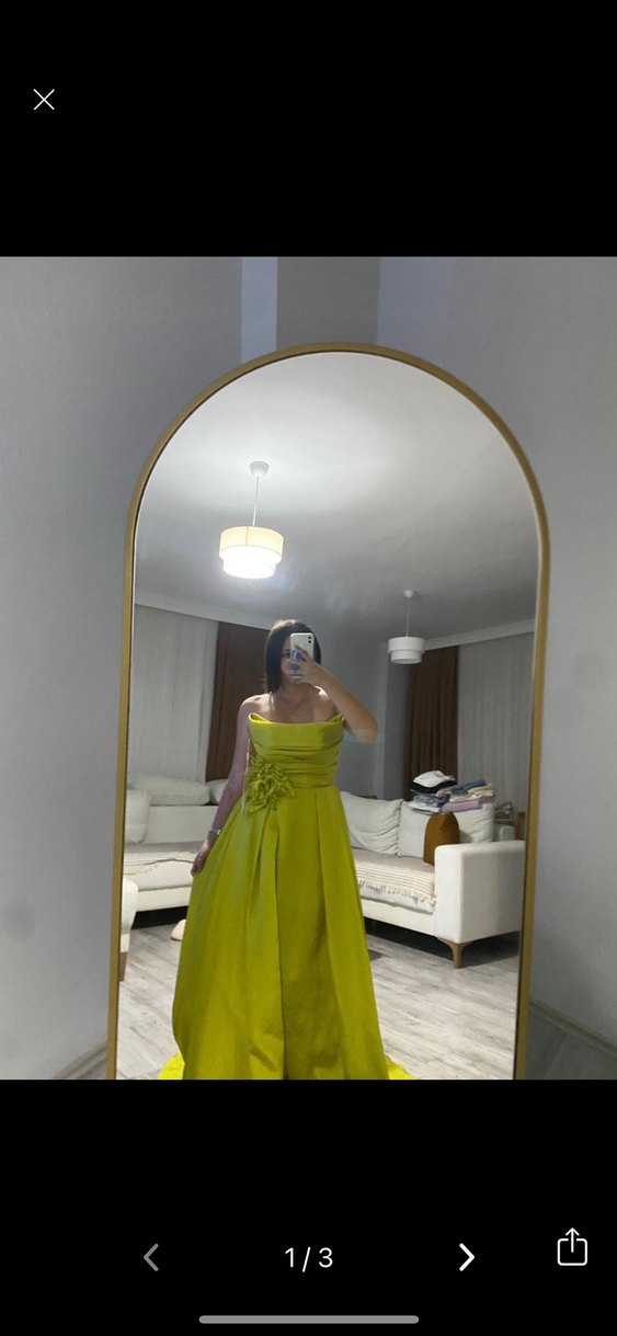 Sarı Drapeli Uzun Straplez Kadın Abiye
