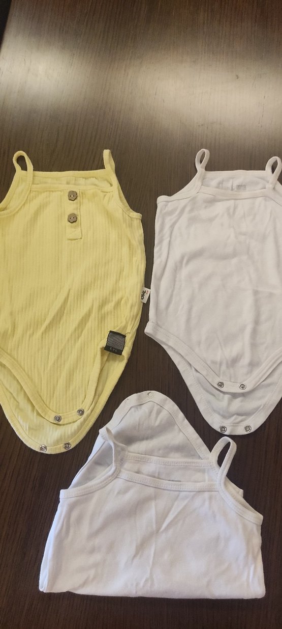 Sarı pastel renkte, düğmeli ve askılı, çıtçıtlı bebek body. Yumuşak ve rahat kumaştan üretilmiştir.