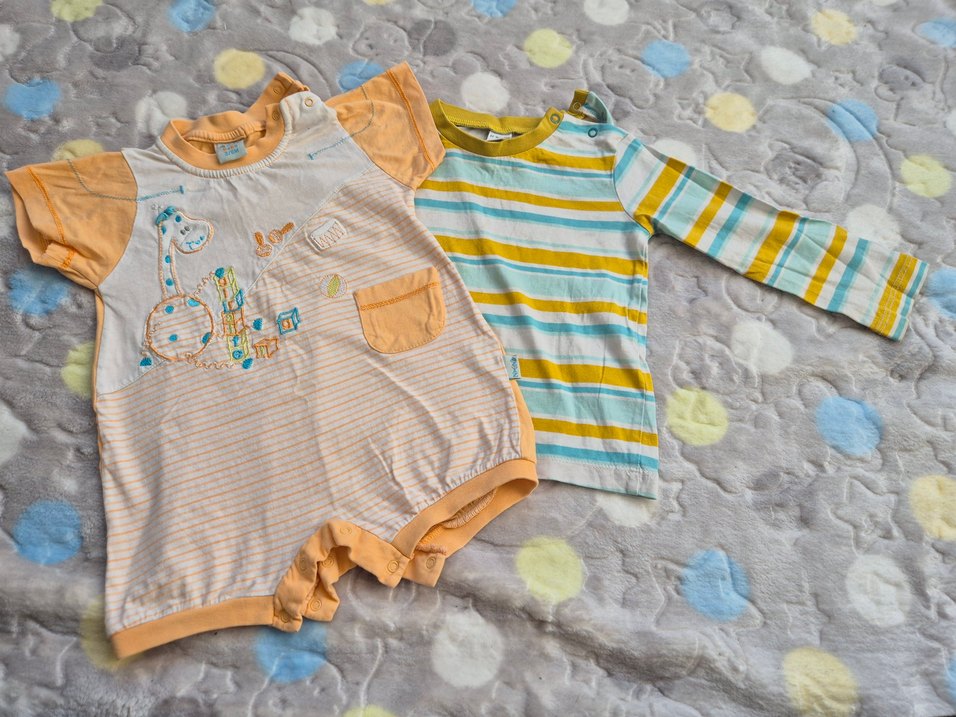 Yumuşak pamuklu kumaştan, kısa kollu, düğmeli sarı bebek body. Yuvarlak yakalı ve sade tasarımlı, günlük kullanım için uygun.