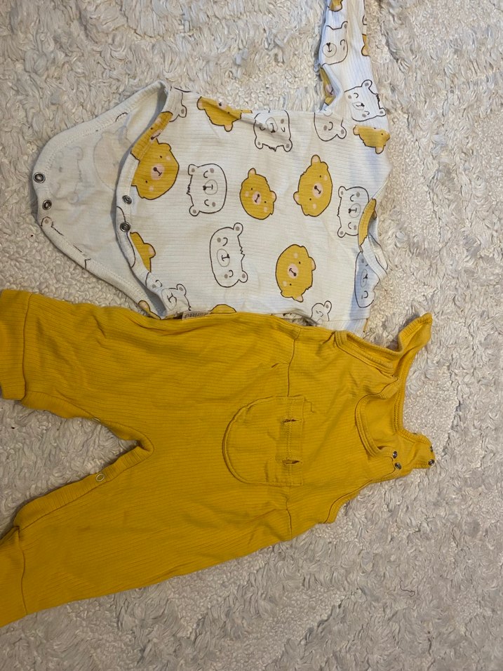 Geçişli sarı düğmeli erkek bebek salopet, uzun kollu ve yumuşak sıcak kumaştan yapılmıştır. Rahat kullanım için uygundur.