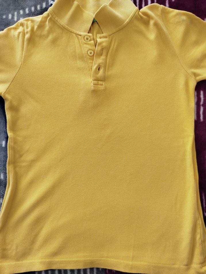 Fitted kesim, düğmeli yakalı ve kısa kollu sarı erkek çocuk polo tişört. Yumuşak pamuk kumaştan, parlak renkte, basic ve sokak tarzına uygun.