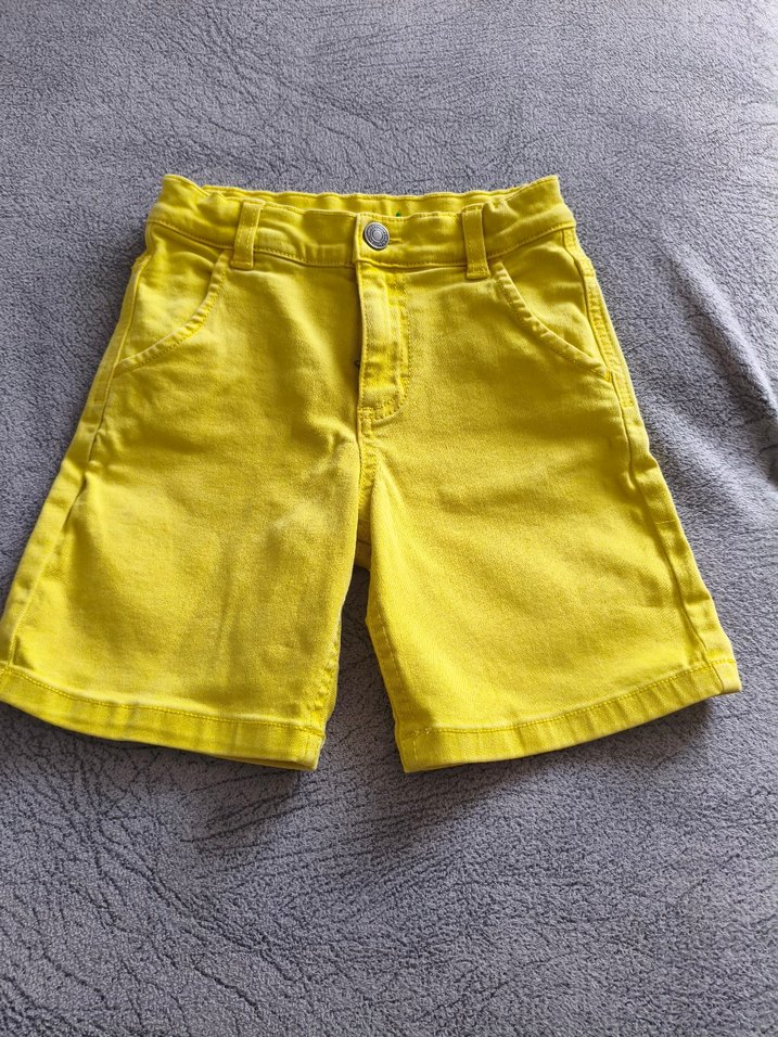 Düğmeli, bol kesim, pamuklu sarı erkek çocuk şortu, sade ve sokak stiline uygun.