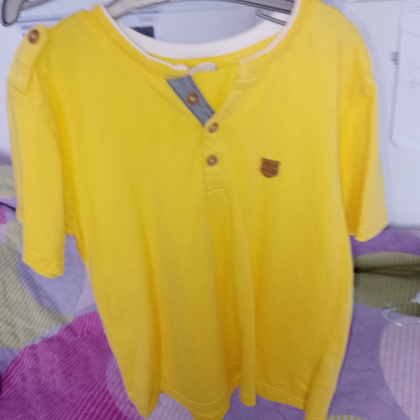 Sarı renkli, kısa kollu, düğmeli ve yuvarlak yaka erkek tişört. Pamuklu kumaştan, bol kesim ve rahat bir sokak stili sunar. gömlek olarak sunmamı istiyor gardrops