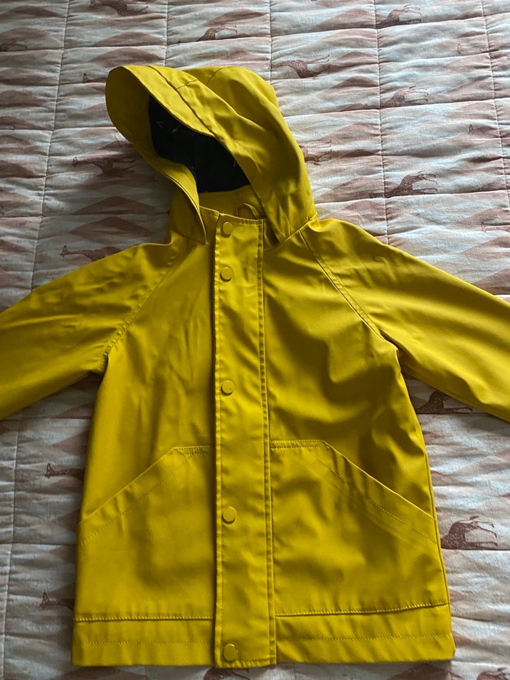 Bu sarı erkek çocuk yağmurluğu kapüşonlu ve düğmeli olup, sentetik kumaştan üretilmiştir. Sade tasarımlı ve dar kesimdir. ️