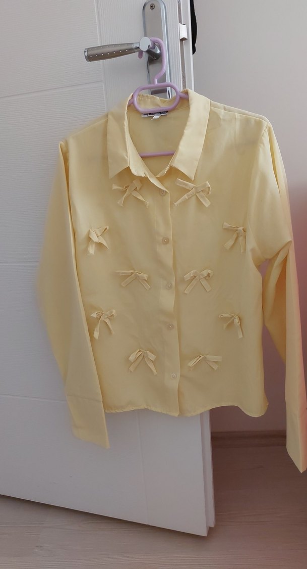 Sarı Düğmeli Kadın Uzun Kollu Gömlek