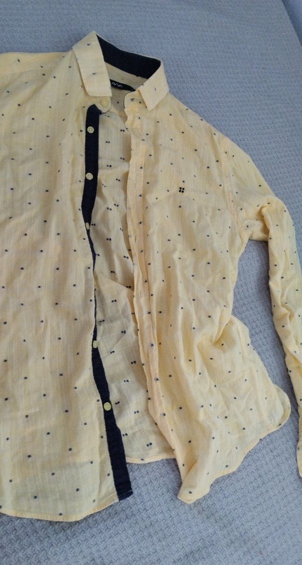 Sarı Düğmeli Keten Erkek Gömlek