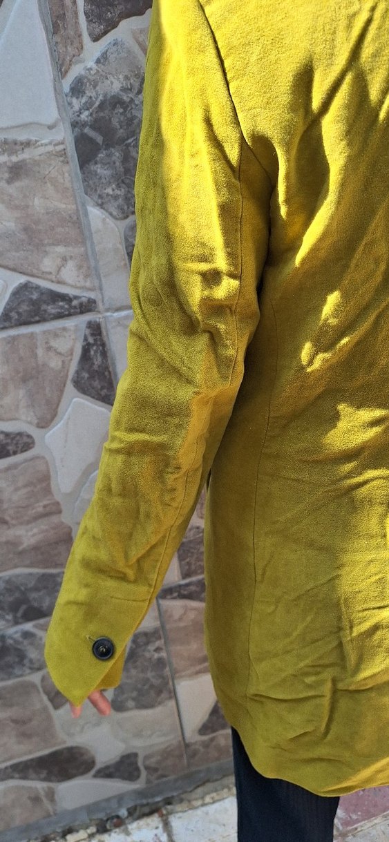 Sarı Düğmeli Keten Hamile Ceketi