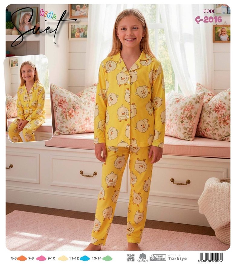 Sarı Düğmeli Kız Çocuk Pijama Takımı Civciv
