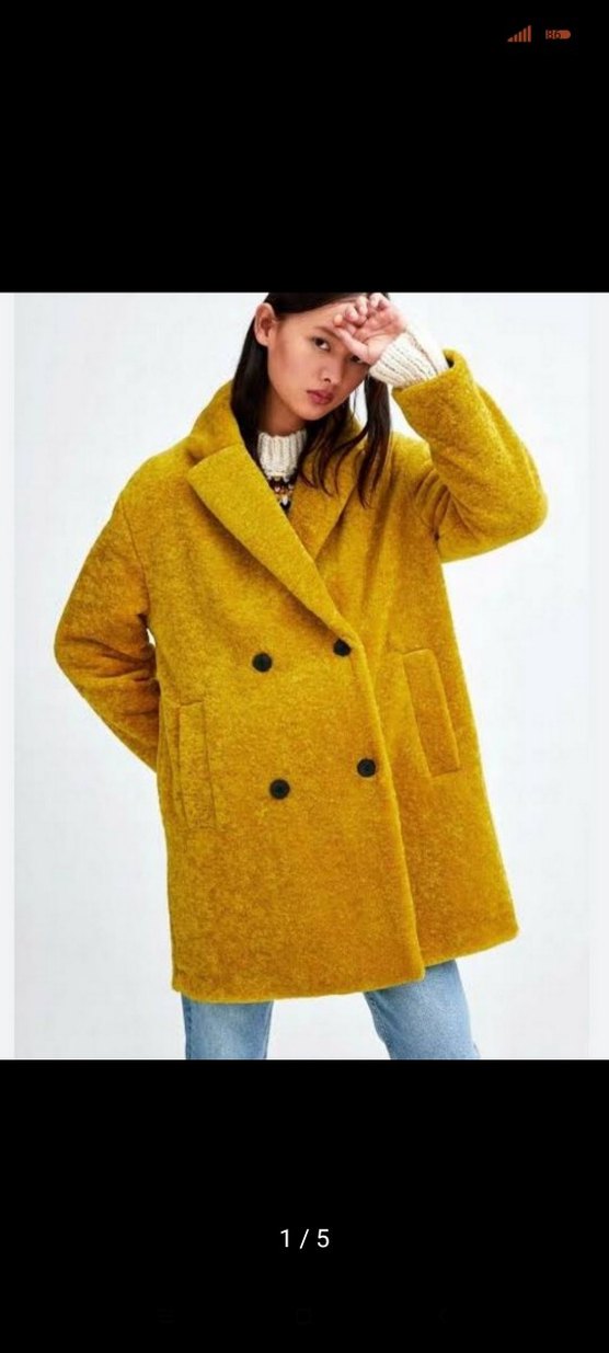 Sarı düğmeli, notched lapel yakalı, uzun kollu, midi boy, bol kesim kadın kaban. Yumuşak ve sıcak kumaştan yapılmıştır, gündelik kullanıma uygundur.