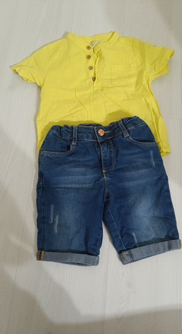 Sarı Düğmeli Tişört ve Kot Şort erkek çocuk
