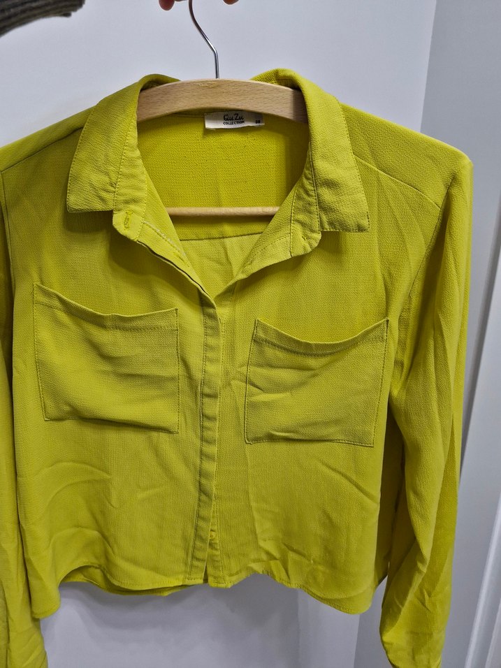 Sarı renk, uzun kollu, düğmeli ve yakalı gömlek. Rahat kesim ve ön cep detaylarıyla günlük sokak tarzına uygun. 38beden