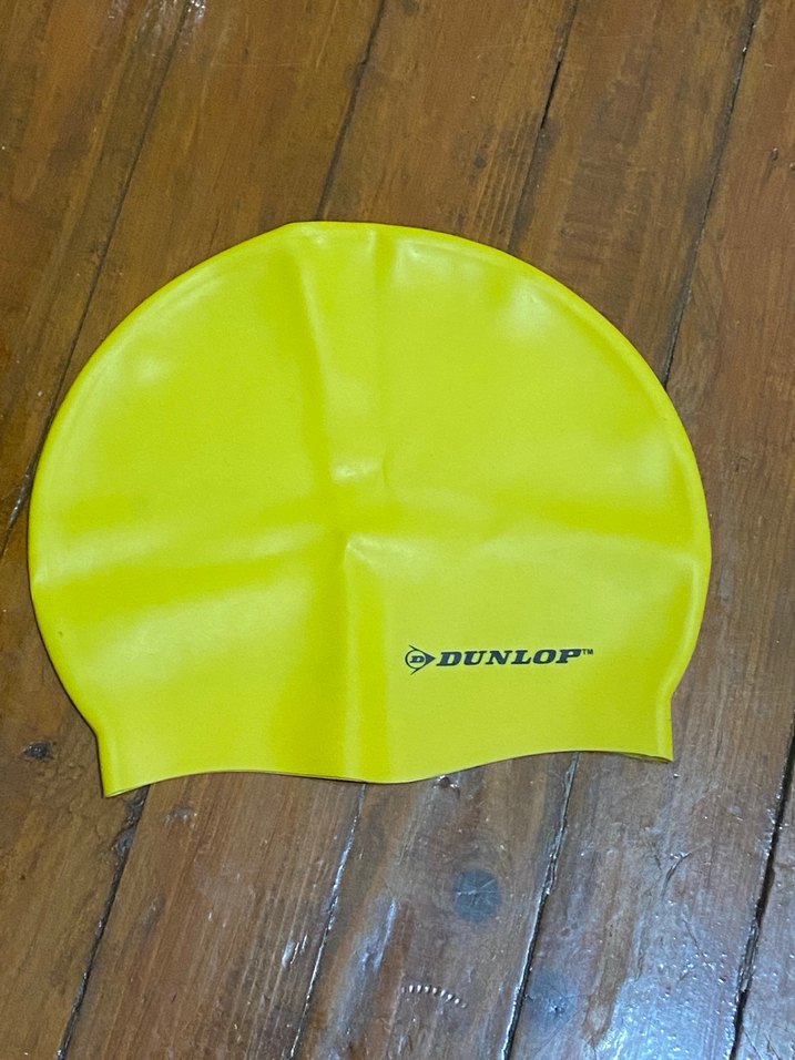 Dunlop logosu bulunan, düz sarı renkte erkek yüzme bonesi, yumuşak dokulu.