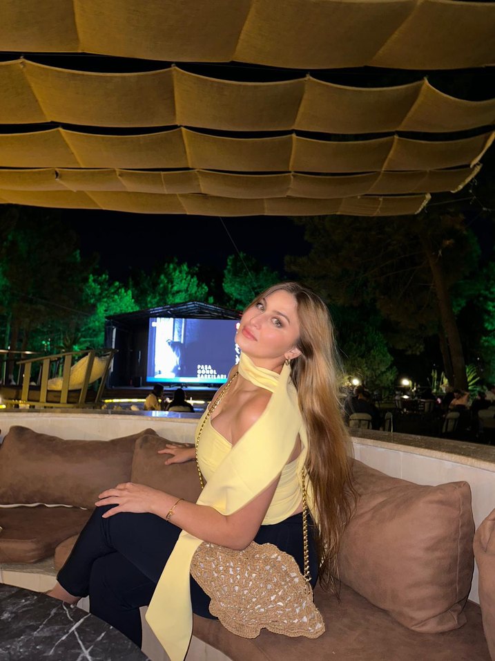 Sarı renkte, drapeli ve halter yaka uzun kollu bluz. İnce askılı, düz desenli, vücuda oturan kesimiyle romantik akşamlar için ideal bir parça. Glamor ve normcore tarzda, sentetik yumuşak kumaştan.