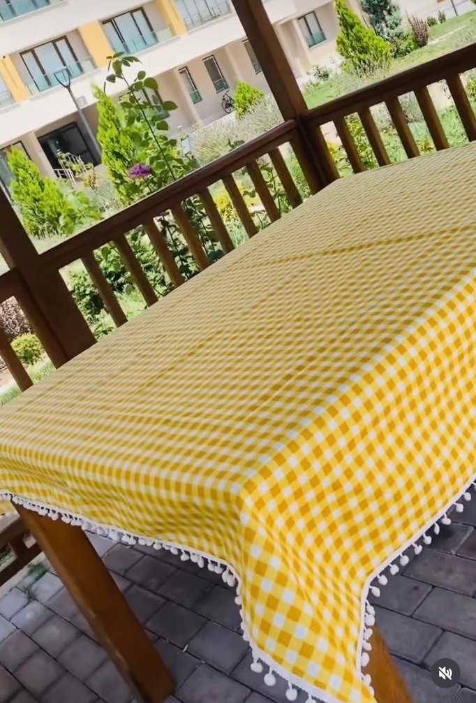 Sarı Ekose Bohem Masa Örtüsü,duck kumaş,renk seçenekleri mevcut