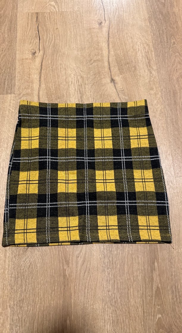 Sarı ekose desenli, örme dokulu, fitted midi etek. Kilo aldığım için artık bana denk gelmiyor bu sebeple satıyorum. Çok zayıf değilseniz almanizi önermem.