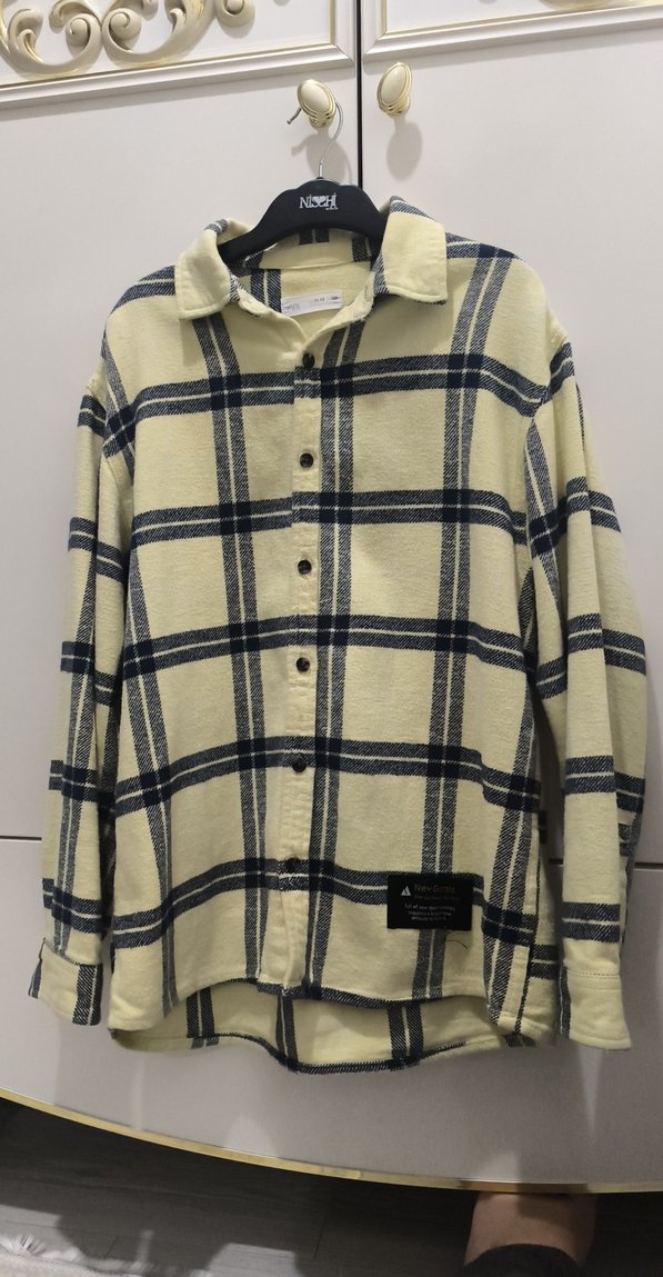 Sarı ekose desenli, düğmeli, uzun kollu kadın gömlek. Rahat kesimi ve yumuşak, sıcak kumaşıyla günlük kullanıma uygundur.
