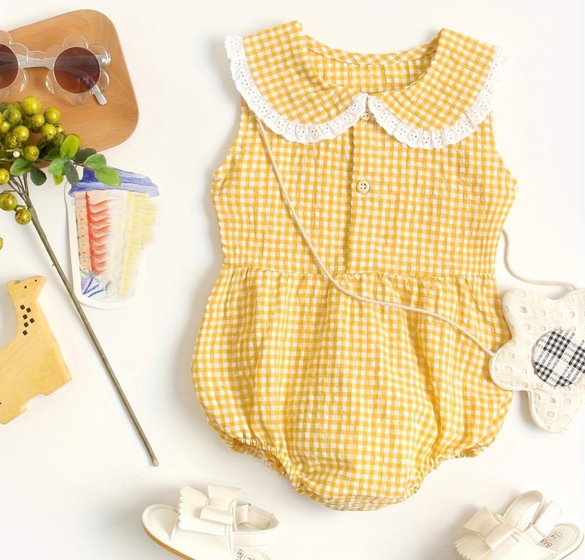 Sarı Ekose Fırfırlı Bebek Kız Tulum