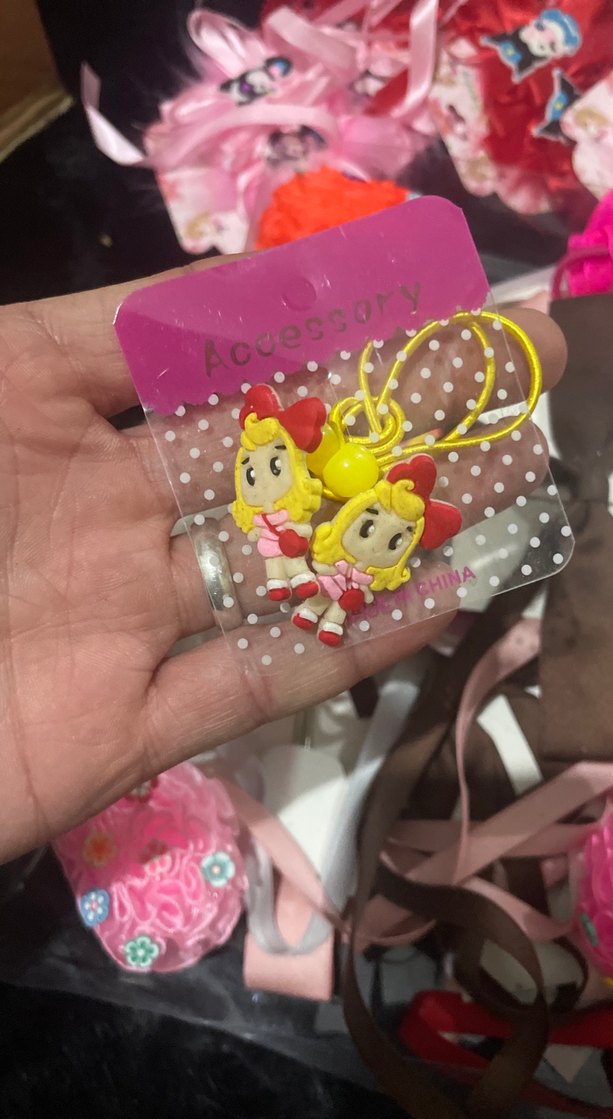 Sarı elastik yapıya sahip, renkli ve baskılı tasarımlı çocuk küpeleri. Bohem ve retro tarzlar için uygun, eğlenceli bir aksesuar.
