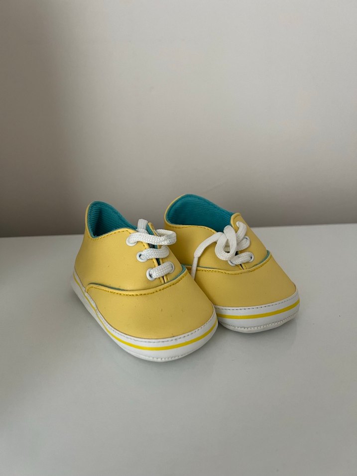 Sarı renkli, düz desenli erkek bebek ilk adım ayakkabısı, rahat ve kolay giyilen lastik tabanlıdır. Normcore tarzıyla sade ve renkli bir görünüm sunar.