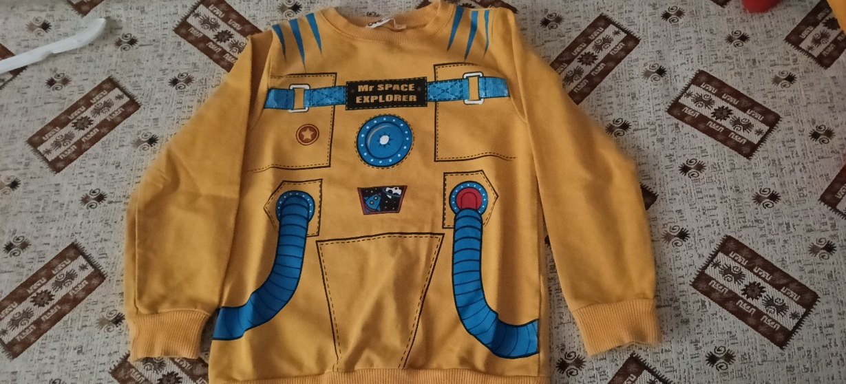 Sarı, uzun kollu, bisiklet yaka erkek çocuk sweatshirtü. Baskılı tasarım. 2 iplik yumuşacıktır. aşınma deformasyon yok