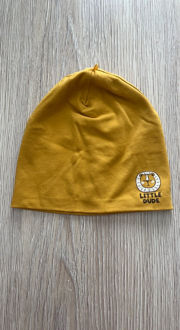 Sarı renkte, yumuşak ve sıcak kumaştan yapılmış erkek çocuk bere. Üzerinde aslan baskısı ve 'LITTLE DUDE' yazısı bulunur. Basic, sokak stili.