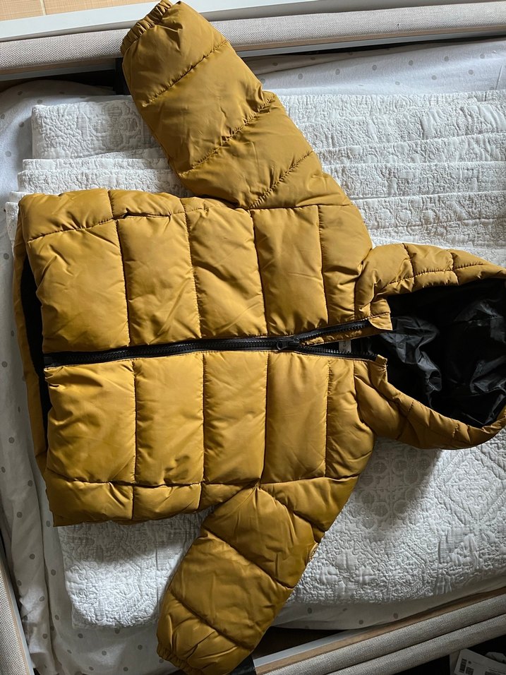 Sarı renkli, fermuarlı ve kesimli erkek çocuk montu. Yumuşak kumaştan, sade ve desensiz tasarım, streetwear stiliyle uyumlu.