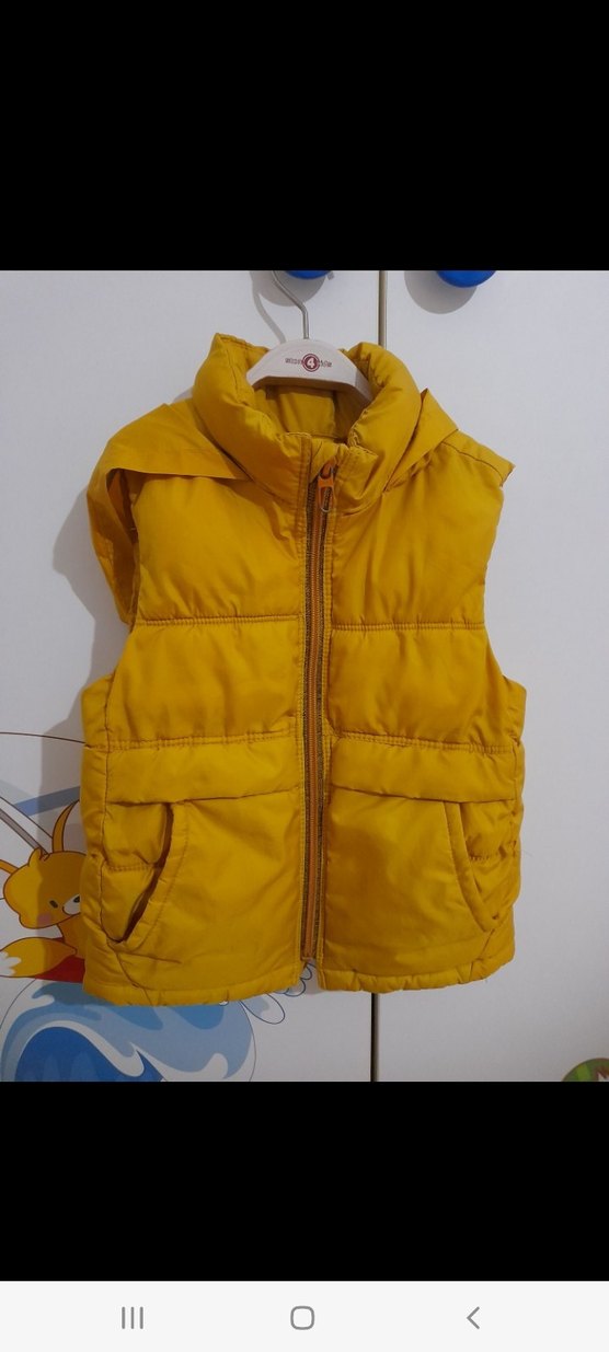 Fermuarlı önden, boğazlı ve kolsuz sarı yelek. Yumuşak, sıcak kumaştan, dar kesim ve sokak stiline uygun. içerisinde hafif tüylenmesi var görsele ekledim.